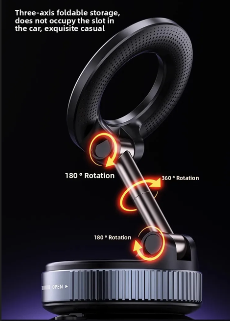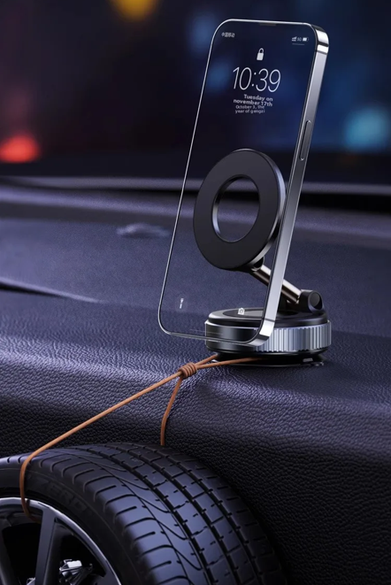 Ce support magnétique pliable pour voiture utilise une ventouse sous vide renforcée avec verrouillage par torsion, offrant une fixation puissante et stable, même sur routes cahoteuses. Repositionnable sans résidus, il est compatible MagSafe et fonctionne avec une large gamme de modèles, notamment iPhone 8 à iPhone 17 (toutes versions Pro/Plus/Max) ainsi que de nombreux Samsung Galaxy (S6 à S22, Note 10/20, séries A) et d’autres smartphones magnétiques. Sa rotation à 360°, ses aimants N52 haute puissance et sa compatibilité avec de nombreuses surfaces lisses en font un support fiable, pratique et sécurisé pour la navigation au quotidien.